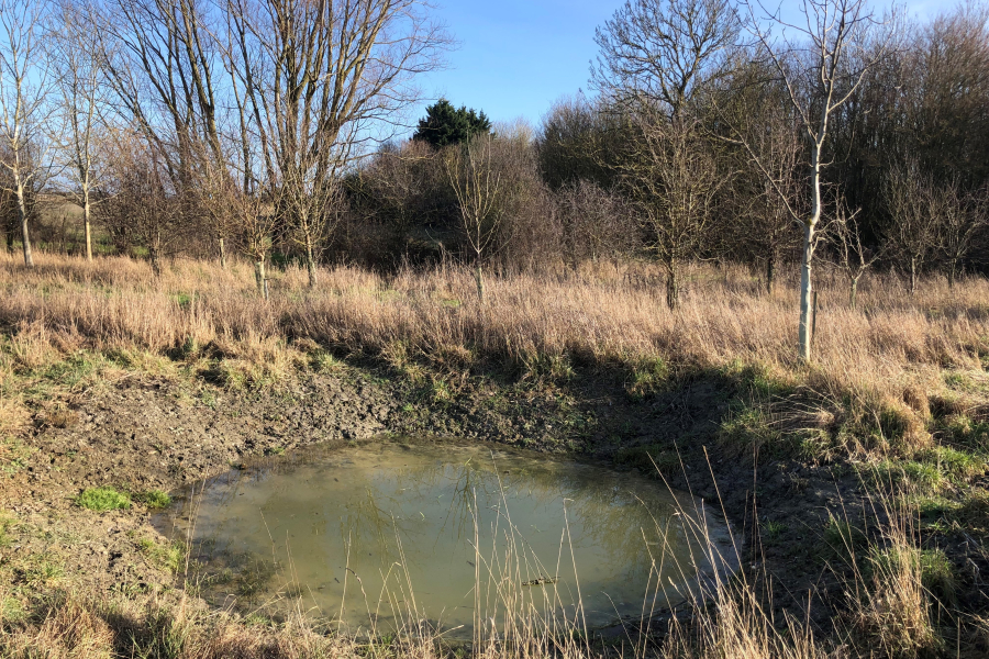 As part of the NLOW project, we have been digging ponds on farmland in Little Thetford and Willingham, and in villages, including at the Old Recreation Ground in Wicken and the Old Recreation Ground in Cottenham. Ponds provide a natural habitat for so many species of flora and fauna and according to research by the Freshwater Habitats organisation, host more invertebrate species than rivers as well as a great number of rare species.